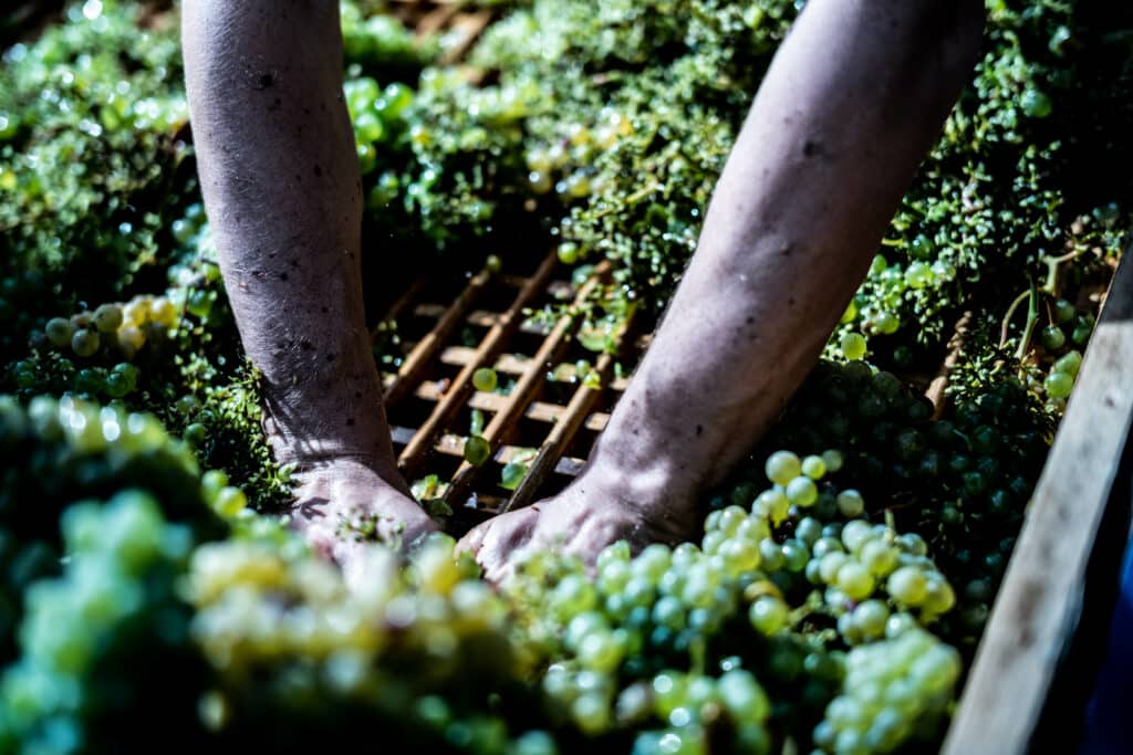 Les vendanges sont faites manuellement à pleine maturité, en tris successifs en caisses de 20 kg. Les raisins sont rapidement transportés dans nos caves situées littéralement sous nos vignes. Les raisins sont ensuite soient mis à macérer (avec ou sans rafles selon les millésimes et les profils de vins recherchés) ou directement pressés à l’aide de notre vieux pressoir horizontal.